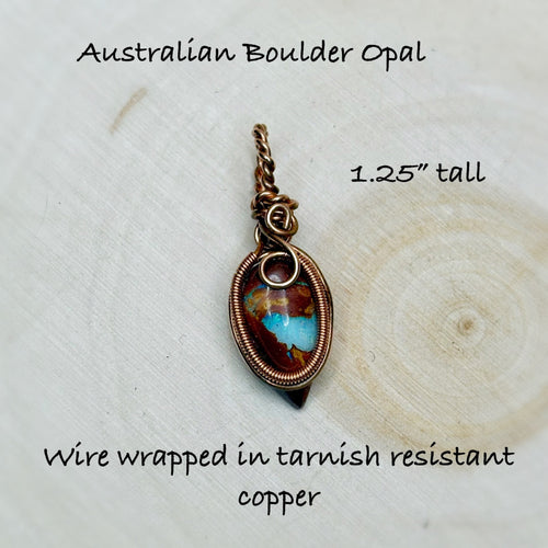 Caring for your Copper Jewelry Natural Opal Pendant is easy. Simply store it in a safe, dry place when not in use. Each pendant comes with detailed care instructions and a gem and mineral card that provides information about the stone's unique properties.